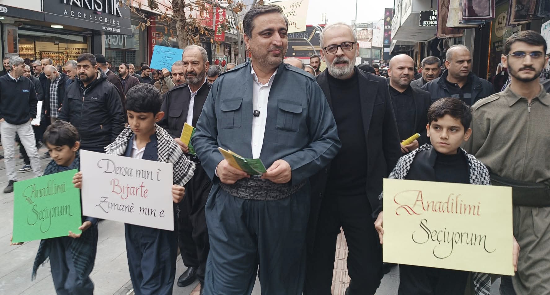 HÜDA PAR Batman İl Teşkilatı, Kürtçe anadilinin önemine dikkat çekmek ve ortaokullarda Kürtçeyi seçmeli ders olarak tercih etmeyi teşvik etmek amacıyla yürüyüş düzenledi.
