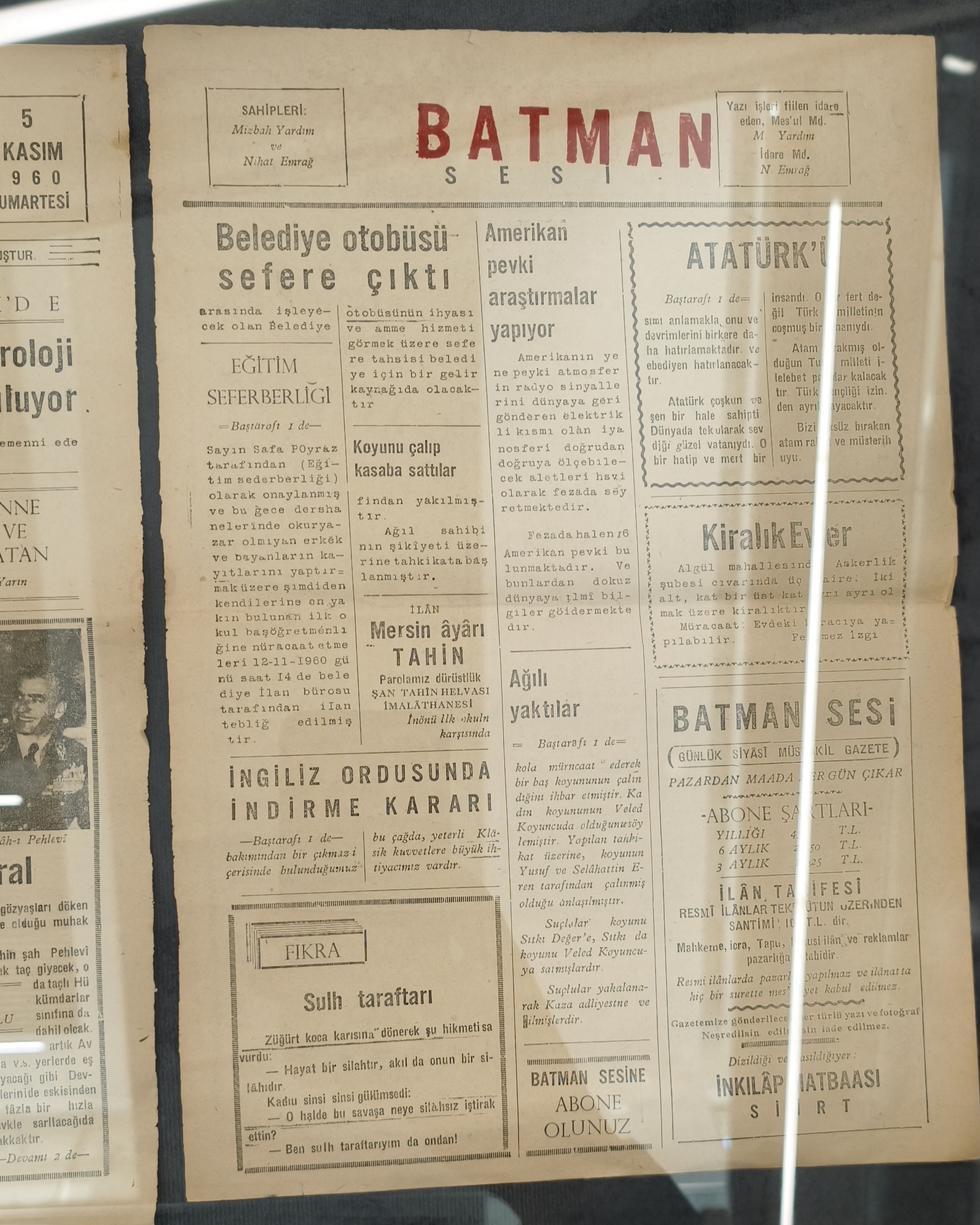 Sergide, Batman’ın ilk gazetesi olan “Batman Sesi”ne de yer verildi. Nihat EMRAK tarafından 15 Eylül 1958 tarihinde Birinci Cadde’de, perona yakın mütevazı bir dükkânda basılan gazetenin, kentteki basın faaliyetlerinin başlangıcı olarak kabul edildiği aktarıldı.